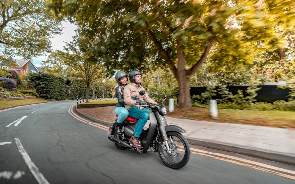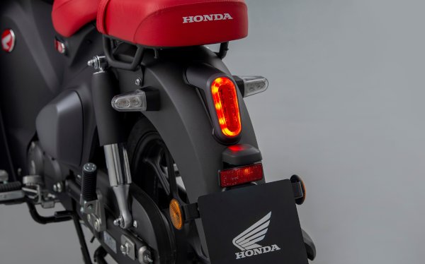 Die aufrechte Fahrposition sorgt für eine hervorragende Rundumsicht und der Sitz aus hochdichtem PU-Schaum sowie der Lenker mit Gummigriffen bieten angenehmen Komfort. Der neue luftgekühlte Motor mit Kraftstoffeinspritzung bietet zusätzliche Leistung mit unaufgeregter Leistungsabgabe. Er ist außerdem sparsam. Wie beim Originalmodell erleichtert die automatische Fliehkraftkupplung die Schaltung des Vierganggetriebes. Der Stahlrohrrahmen, die Teleskop-Gabel, die beiden Stoßdämpfer hinten (jeweils mit leistungsstärkeren Federn), die 17-Zoll-Aluminiumgussfelgen sowie schlauchlose Reifen sorgen für ein zuverlässiges Handling. Die Super Cub C125 ist mit hochwertigen Extras wie kompletter LED-Beleuchtung und Honda SMART Key ausgestattet. Für mehr Flexibilität sorgt der vormontierte Soziussitz.